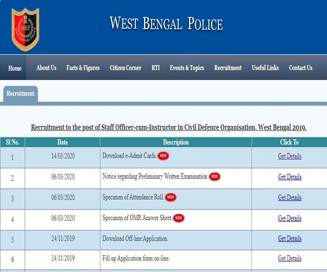 West Bengal Police Hall Tickets For Staff Office Cum Instructor Exam Released At Wbpolice Gov In Here S How To Download