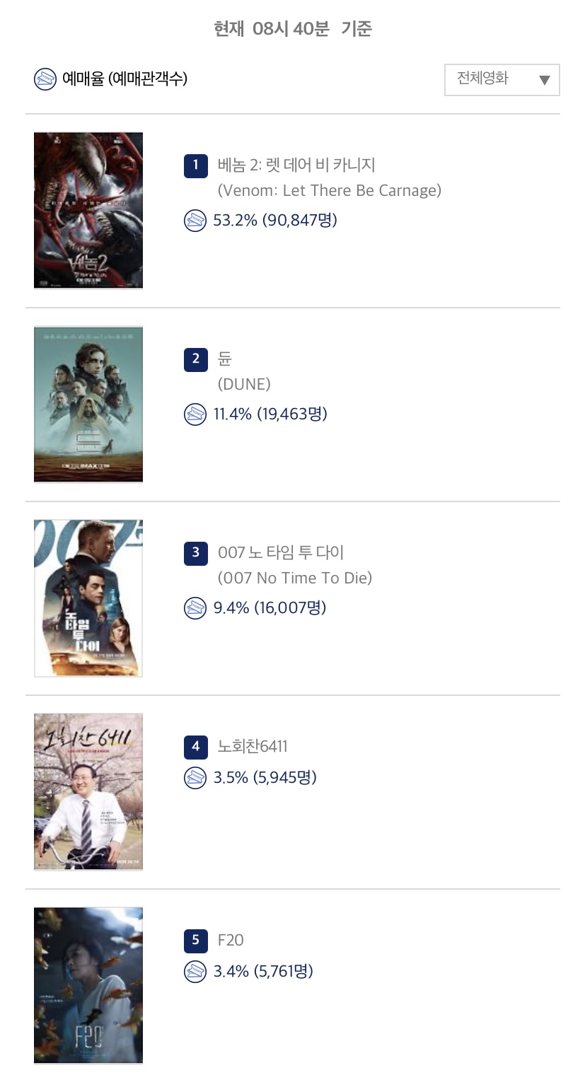 예매 관객수는 15만 3971명. 13일 개봉하는 영화 베놈 2. 2021년 최고의 화제작 - 영화 베놈2.